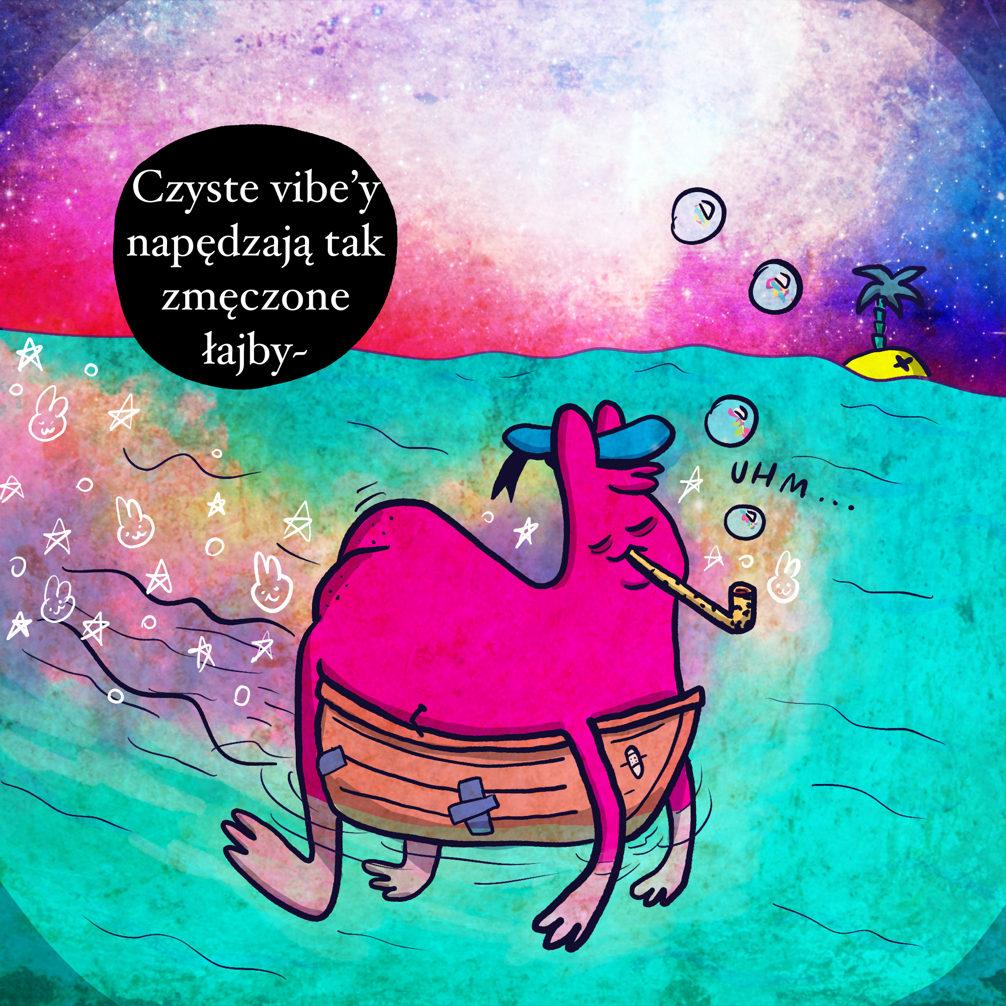 Zainspirowane tym widełem. Koleś ma bardzo pozytywny vibe. A w komiksie jest to uczucie, gdy jest się zmęczonym po pracy i dobry vibe pozwoli złapać jeszcze trochę sił na robienie czegoś poza zdychaniem.