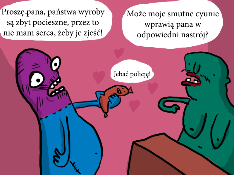 Pvek jest inspiracją dosyć oczywistą, w tamtych latach aż podpadało pod tanią podróbkę. Gdy zapożyczasz tak specyficzny język internetowo-skojarzeniowo-absurdalny, to musiało tak się skończyć. Żeby nie było, nie planowałem tego, nie było żadnej premedytacji. Jeżeli dobrze pamiętacie, wtedy rysowałem, zanim powstawał pomysł, więc to, co pochłaniałem na bieżąco, wysiękało wymieszane na elektroniczny papier.