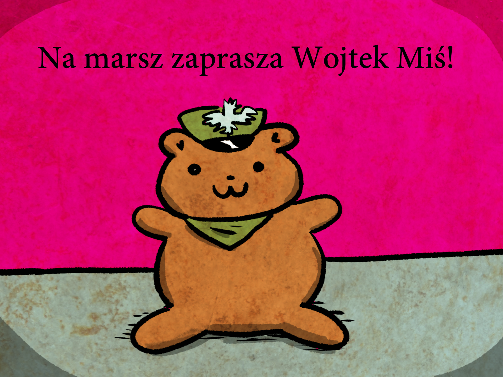 A miś nawiązuje do Wojtka, który był radosną maskotką. Udomowioną, a po wojnie wpierdoloną do klatki.