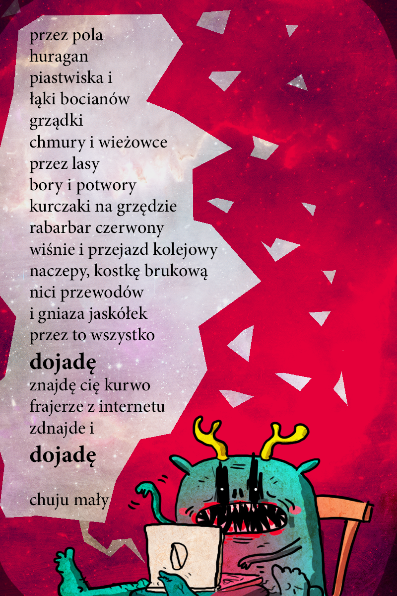 Ot takie moje próby z poezją. Tytuł to fragment I Drove All Night Roya Orbisona. Korzystając z okazji – co tam się kurwa dzieje w tym tekście? Typ nie zadzwonił, tylko jedzie kurwa całą noc, krocze zapocone od motora, wpada do laski i mówi „Ej kurwa, jechałem całą noc. Należy mi się seks w nagrodę”. Co za pojebana akcja.