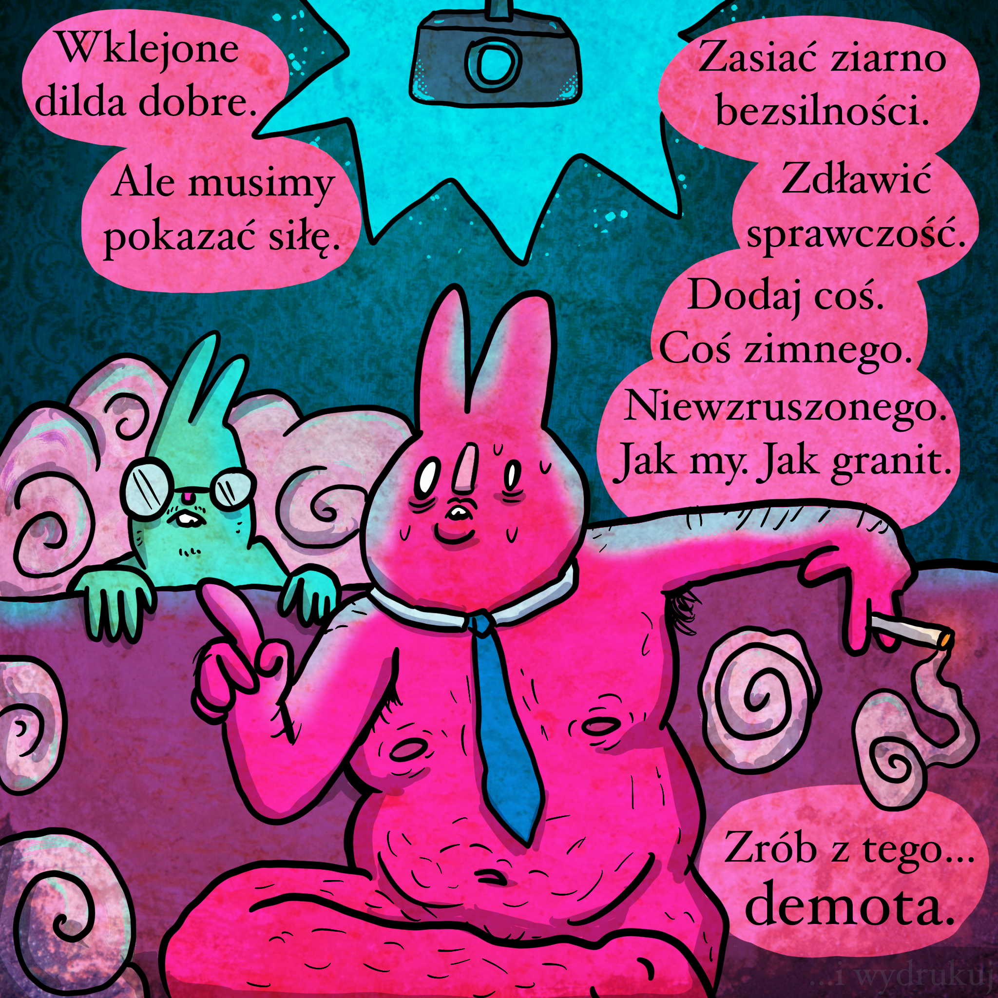 Ale susza była u spierdolin z PiSu, jakiś obesrany poseł w sejmie w trakcie obrad nad projektem Kai Godek pt. STOP LGBT (żeby było tak pięknie jak w Rosji, I guess) na mównicy zaczął pokazywać wydrukowanego demota. Na nim była przeróbka fotki z protestów z USA przeciw lockdownom i typom zamieniono karabiny na dilda. Nie będę nawet tego wklejał. Jadą typy na kłamstwach, bo mogą. Honor głęboko w dupie ugnieciony, żeby nie wyłaził i leci szczujnia na pełnym kurwisku. Nie dość, że działa, to dodatkowo ręce opadają, bo jak można w ogóle z czymś takim walczyć. Nie wygrasz w szachy, gdy drugi typ nasra na szachownice i krzyknie Szach mat! To jest pokaz siły ponad zasadami rozumu i godności człowieka.