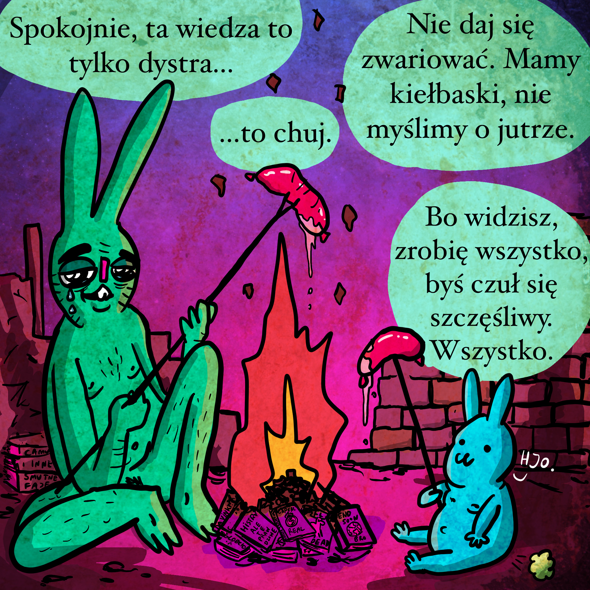 Soon. Żeby dzidzio nie było smutne przez wiedzę o nieuchronności pierdolnika klimatycznego, koszmarze bezsensownej egzystencji, historii która lubi się powtarzać i masę dołującej w chuj prozy, dzielny tata odpowiedzialnie odcina dostęp do tej zarazy mózgu przekazywanej drukiem. Trochę trąci pierdoleniem, że głupi ludzie są szczęśliwi. Ale to pierdolenie jest.
