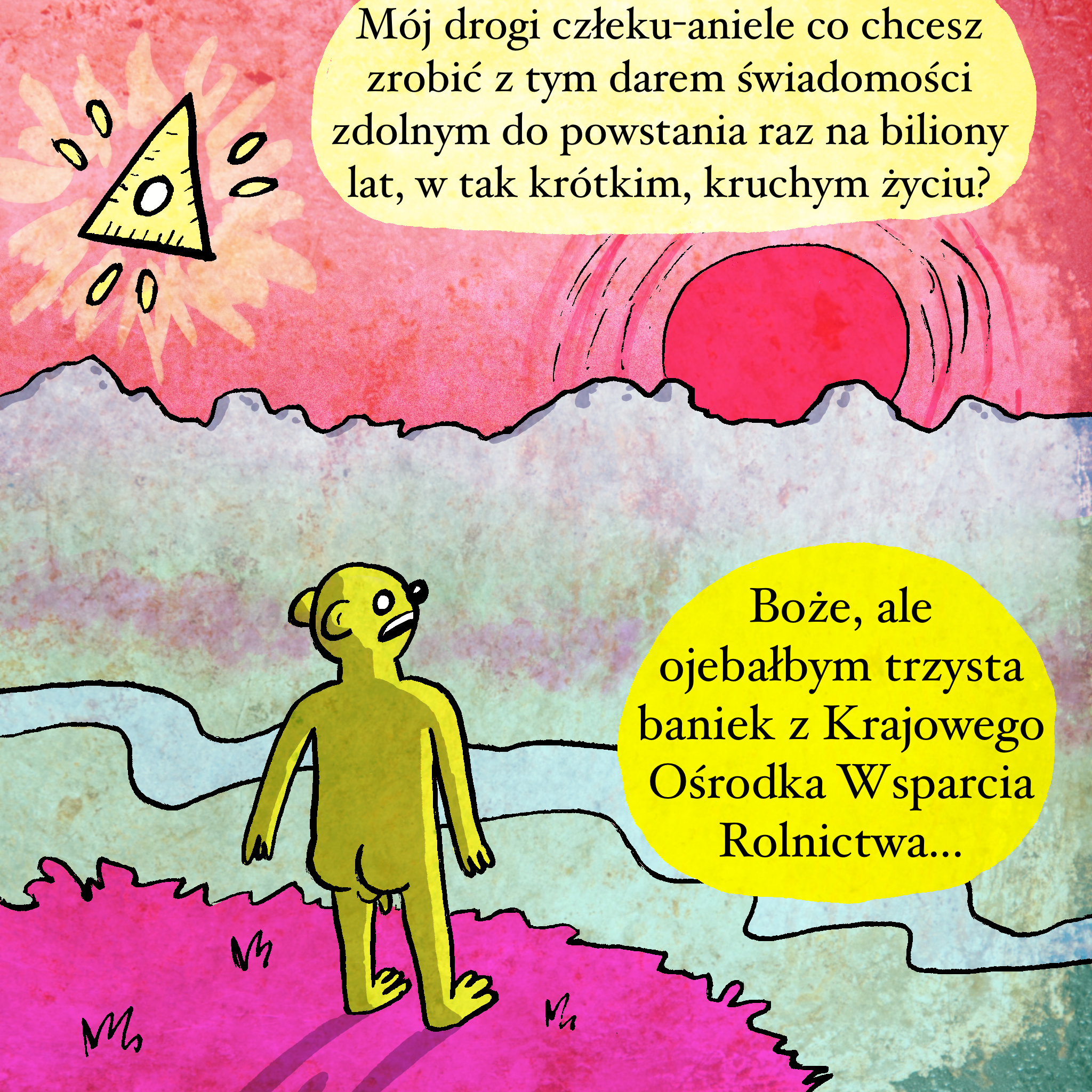 A taka aferka się zadziała – działeczka się sprzedała. Wszelkie pełzające stworzenia więcej wnoszą swoim pełzaniem do świata niż te pazerne polityczne i biznesowe chuje. Wyobraź sobie zamiast podziwiania zachodu słońca wolisz siedzieć i myśleć jak tu skombinować więcej kasy cudzym kosztem. Co za życie! Co za ambicje! Bóg, którego mają na ustach byłby dumny ze swojego dzieła.