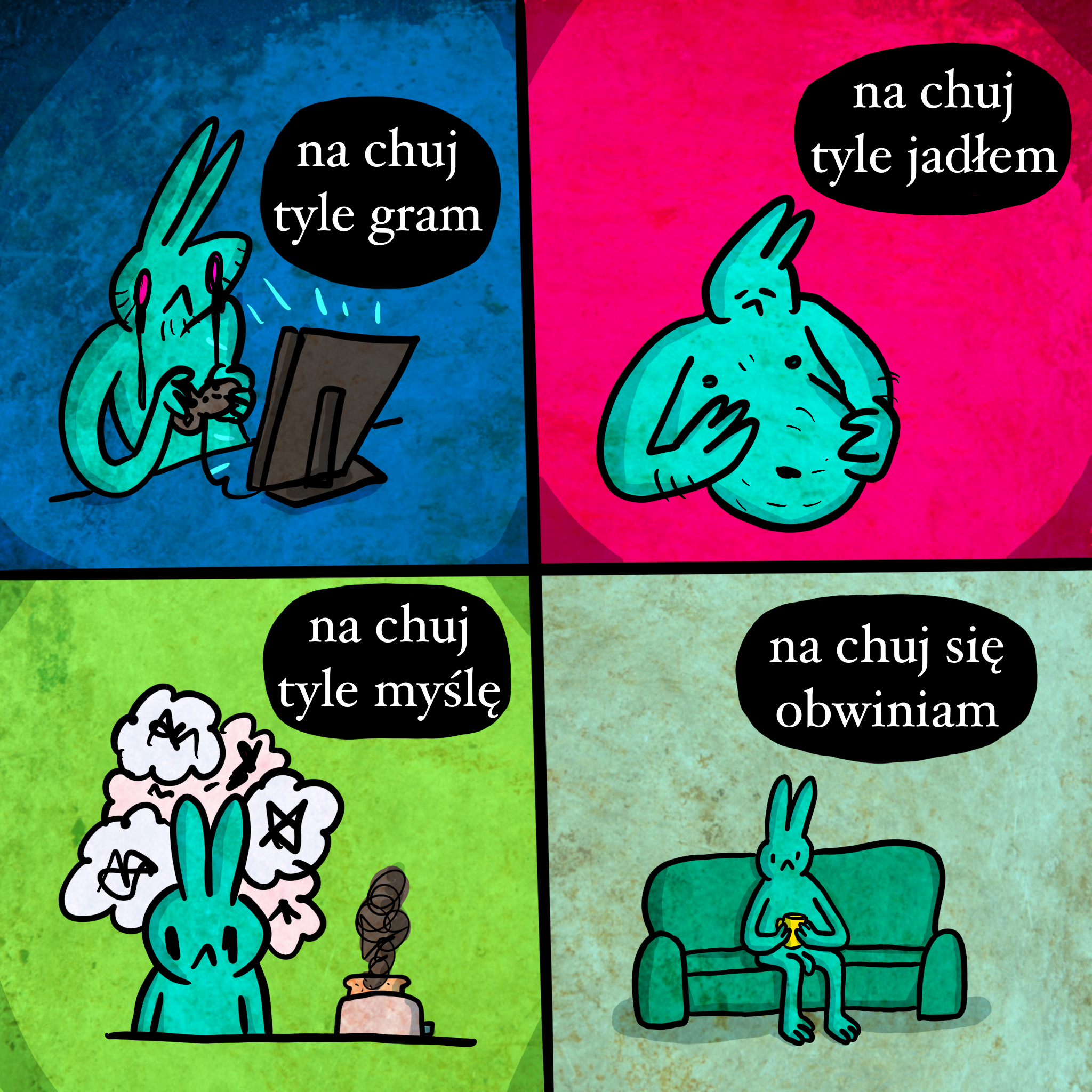 Komiks o toksycznej pętli tracenia kontroli nad sobą, obwiniania się za to i tracenia więcej kontroli, bo poczucie winy zajmuje głowę i pożera resztki siły woli.