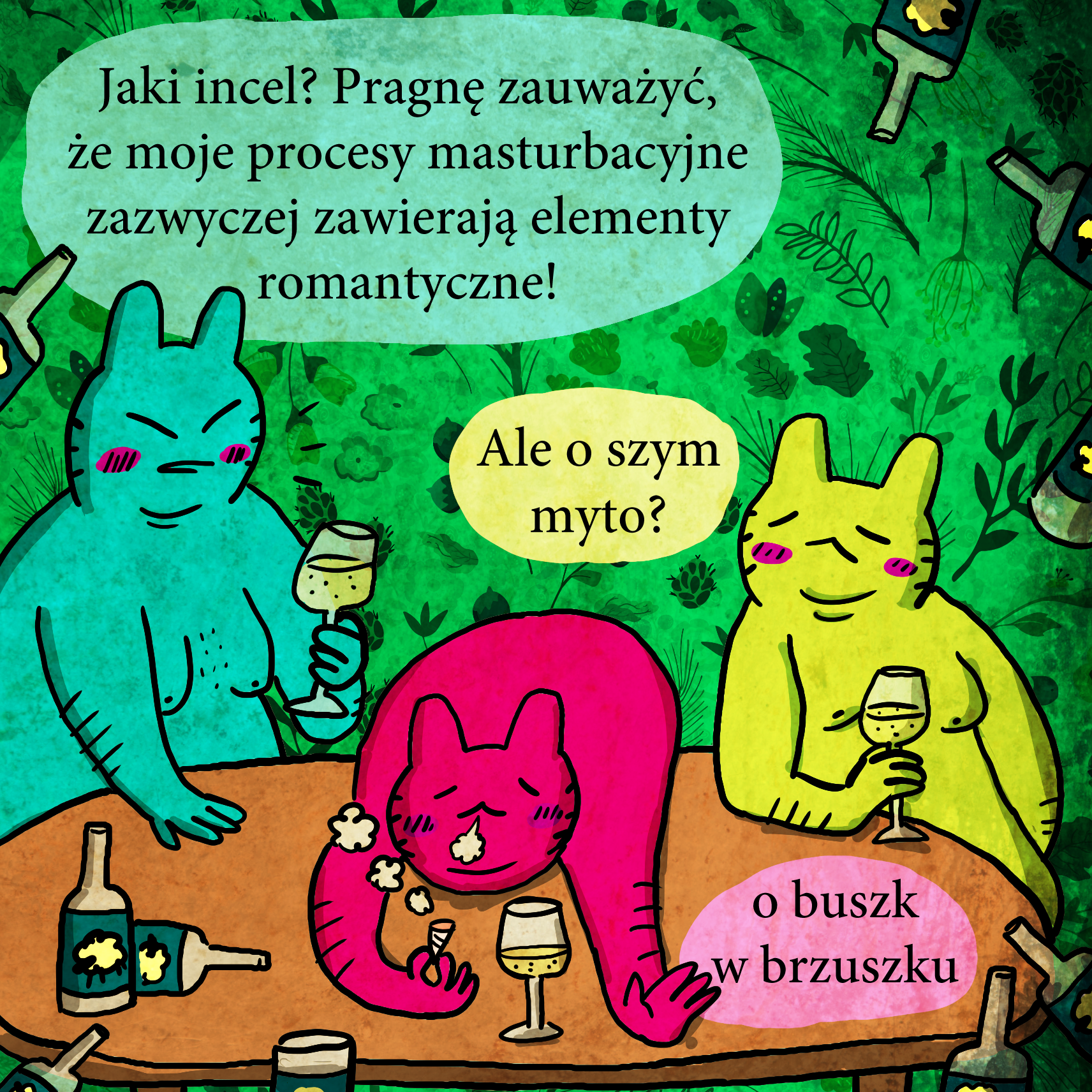 Z tego okresu pamiętam, że istnieje grupka soft inceli, ale bardziej wholesome. Jednak ciągle creepy. To było inspiracją. Nie podam nazwy fanpeja, bo to odprysk z 4chana i przekładaniec wholesome/edgy contentu, ale można było tam zobaczyć waifu wednesday, albo coś w ten deseń. Typy wstawiały w komentarze swoje waifu z różnych animu/filmów. Gorzej, że też i osoby z realnego świata, więc kurwa słabo. Ale pomijając spierdolenia, najfajniej było zobaczyć wpisy typu: „Moją waifu jest moja ukochana dziewczyna, którą niedawno poznałem. Jestem z nią bardzo szczęśliwy i zrobiłbym dla niej wszystko.” do tego pozytywne reakcje wszystkich soft inceli – gratulacje i życzenie szczęścia. Żadnego pierdolenia o betach, simpach i braku zaufania do kobiet. Trochę to środowisko było w tamtym czasie relatable, a przynajmniej najbardziej z tego, na co mogłem trafić. Gdyby tylko było więcej tego typu miejsc w internecie, do tego bez otoczki prawicowych zjebów szukających łatwego narybka do konwersji na faszola. Młodzi mężczyźni mogli by być w trochę lepszym miejscu niż teraz. Niech ktoś.