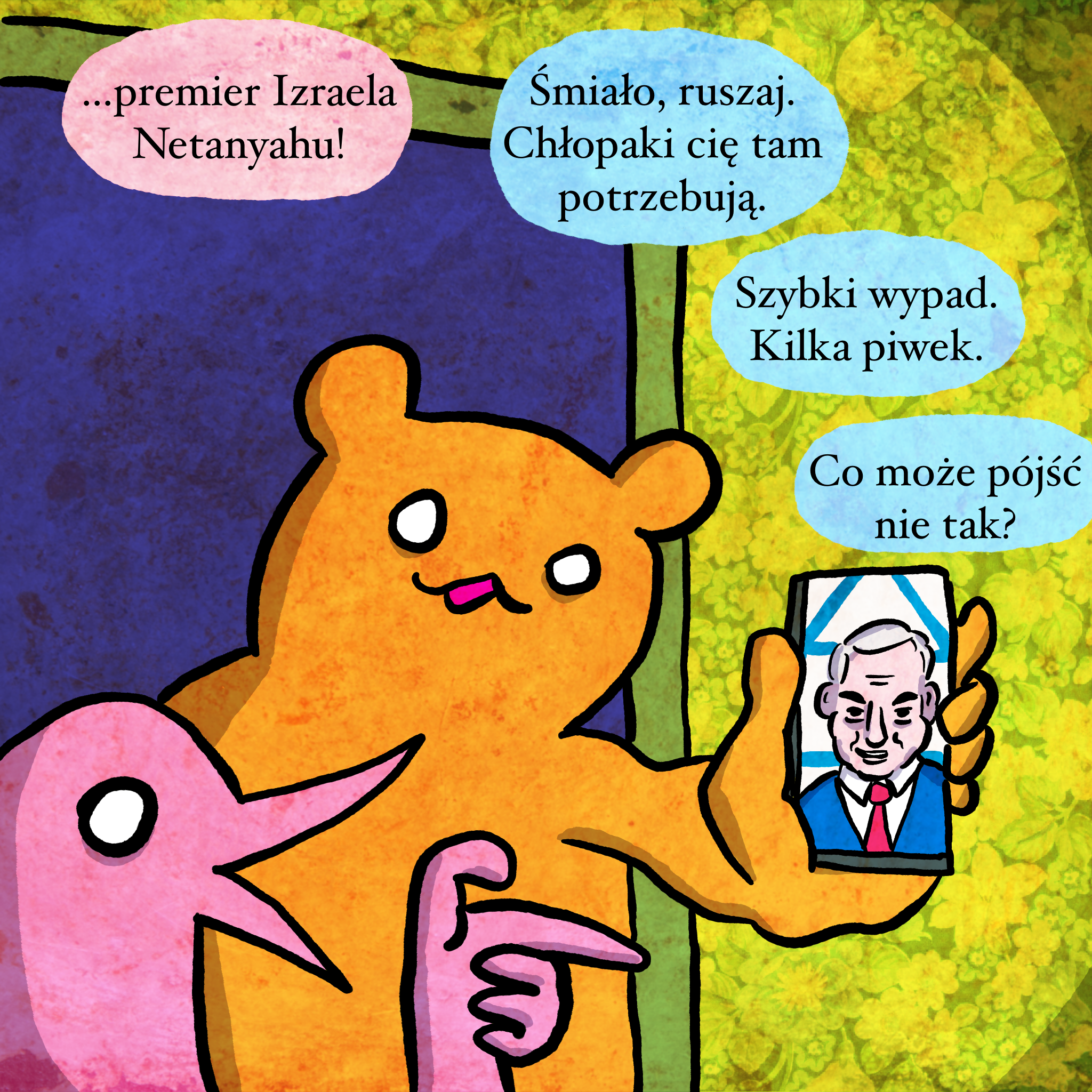 Gdyby żył jeszcze świętej pamięci J.Epstein, to pewnie by radośnie wymieniał esemeski z Netanyahu, o tym jak wzrost cen ropy i kolejne fale migracji pogłębią postępującą radykalizację i popularność prawicy w Europie. A im więcej prawicy, tym Izrael spokojniejszy, bo któż inny przymknie oko na ludobójstwo w imię dobrej sprawy?