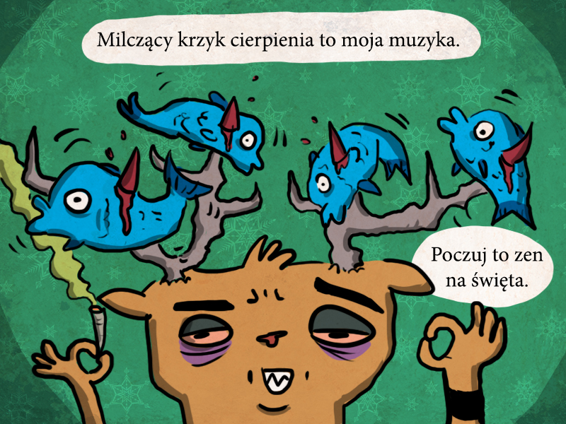 P.S. Najgorsza i najbezsensowniejsza tradycja. Co ma symbolizować powolne torturowanie ryb finiszowane nieumiejętnym ubojem? Cud narodzin posmaku mułu w mordzie? Kto to wymyślił i czy w ogóle testował na grupach kontrolnych?