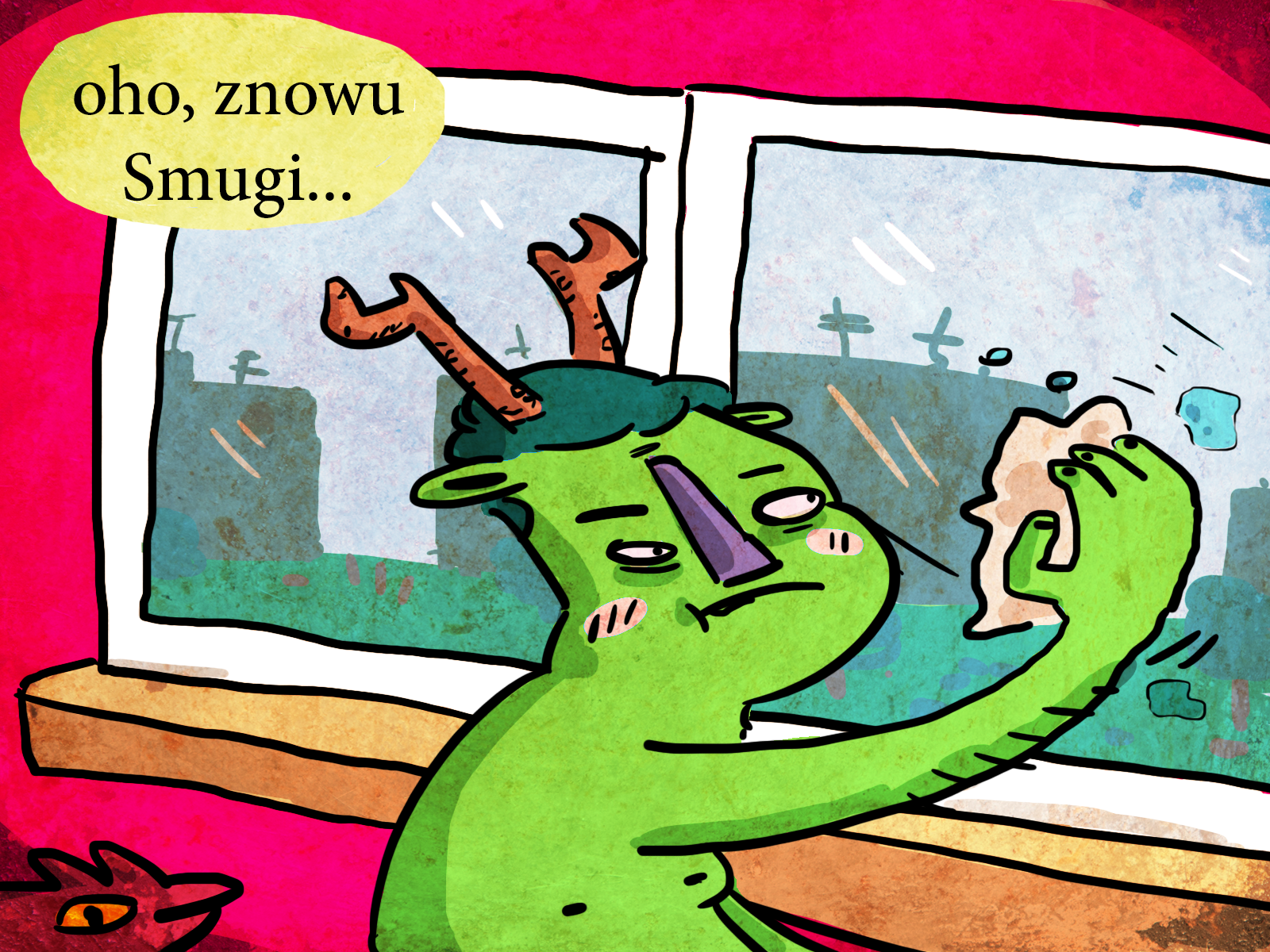 Ha! Bo tu chodzi o to, że myślisz, że on widzi smugi na szybach, a tam stoją cwane mordeczki z cwaniackimi minami, po angielsku można powiedzieć, że mają „smug face”. Mistrzem takich mord jest Alec Smith, no jakie to są zawadiaki, to ja nie mogę.
