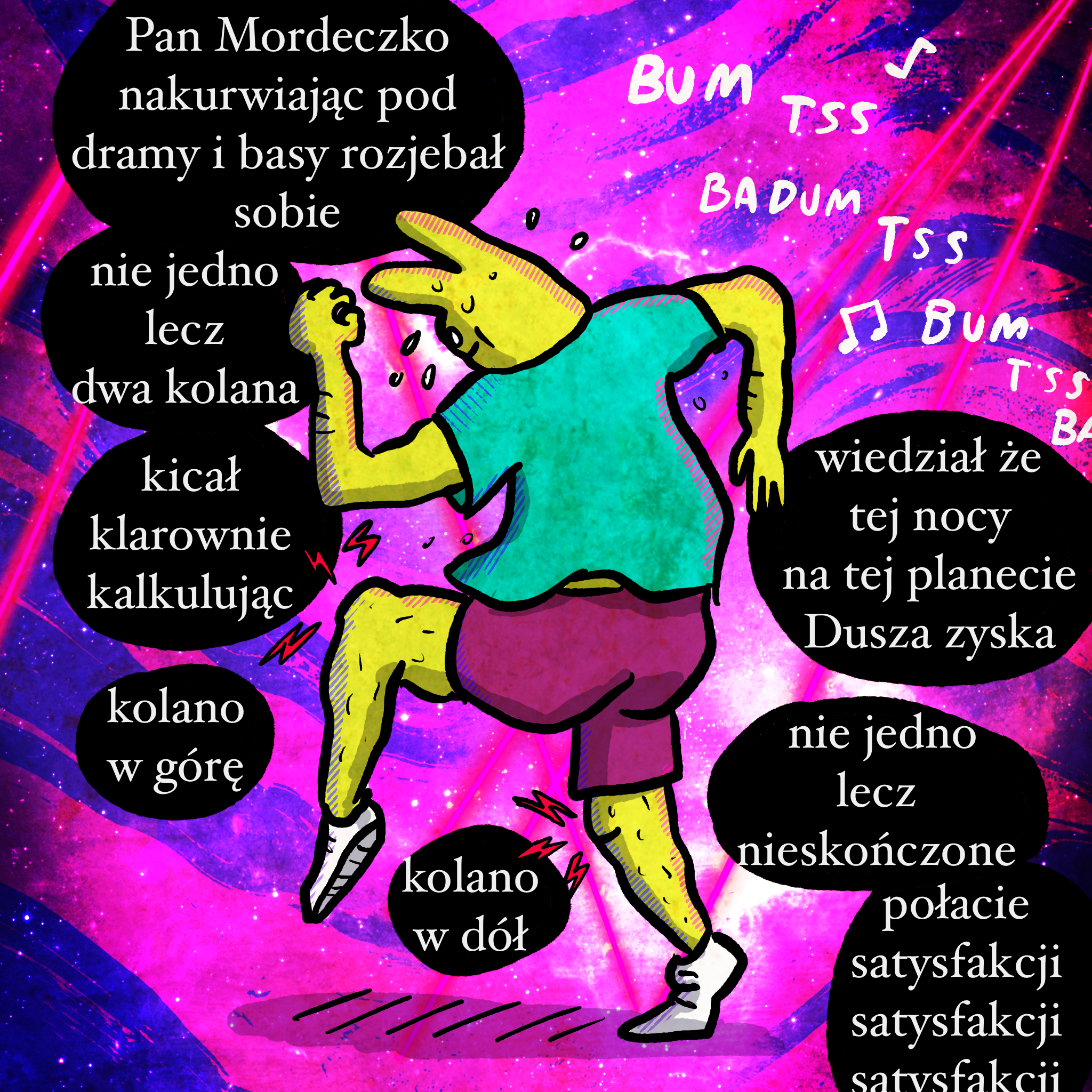 Pan Mordeczko i cały styl pisania jest luźnym nawiązaniem do Pana Cogito Herberta. „…but tonight. On this planet.” jest z intra albumu Hold Your Colour Pendulum. Satysfakcje powtarzane w nawiązaniu do Satisfaction Benny’ego Benassiego.