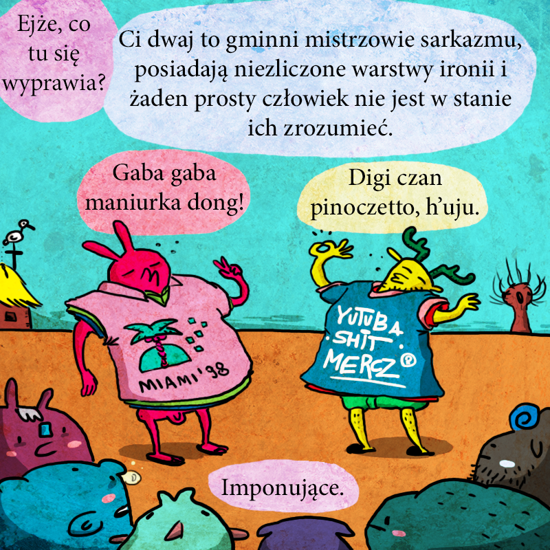 Odpowiedź na rosnący trend postironicznego kontentu w naszych internetach, który starał się naśladować zachodnie trendy. Wydaje mi się, że to dotyczyło Gargamela i tego typu youtuberów. Obecnie wzruszam głęboko ramionami na ten temat.