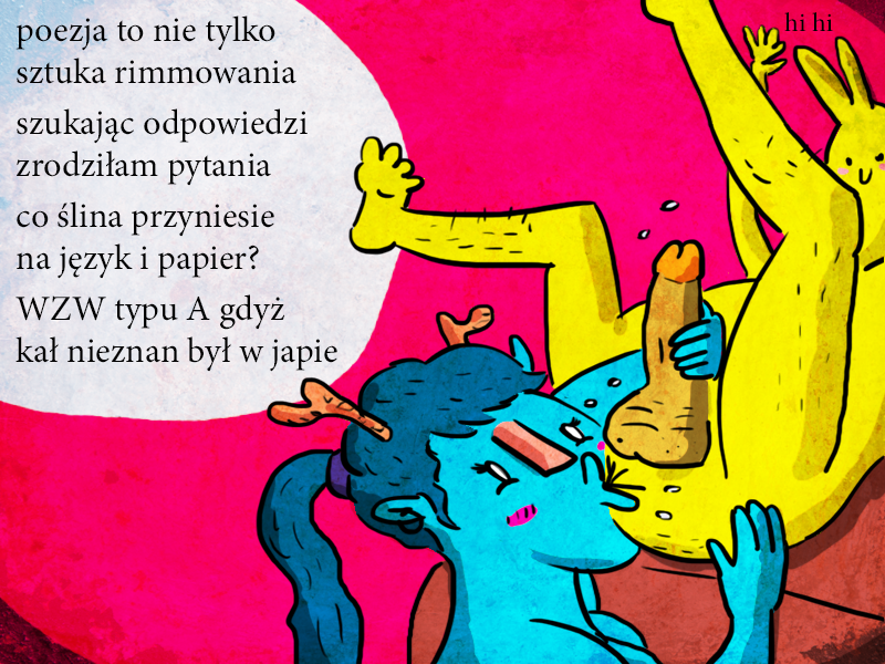 Taka skromna poezja skojarzeń rimmingu z rymowaniem, mówi się „co ślina na język przyniesie”, a co się mówi można spisać i tak oto spisałem wiersz o lizaniu rowa i zarażaniu się WZW ¯\_(ツ)_/¯